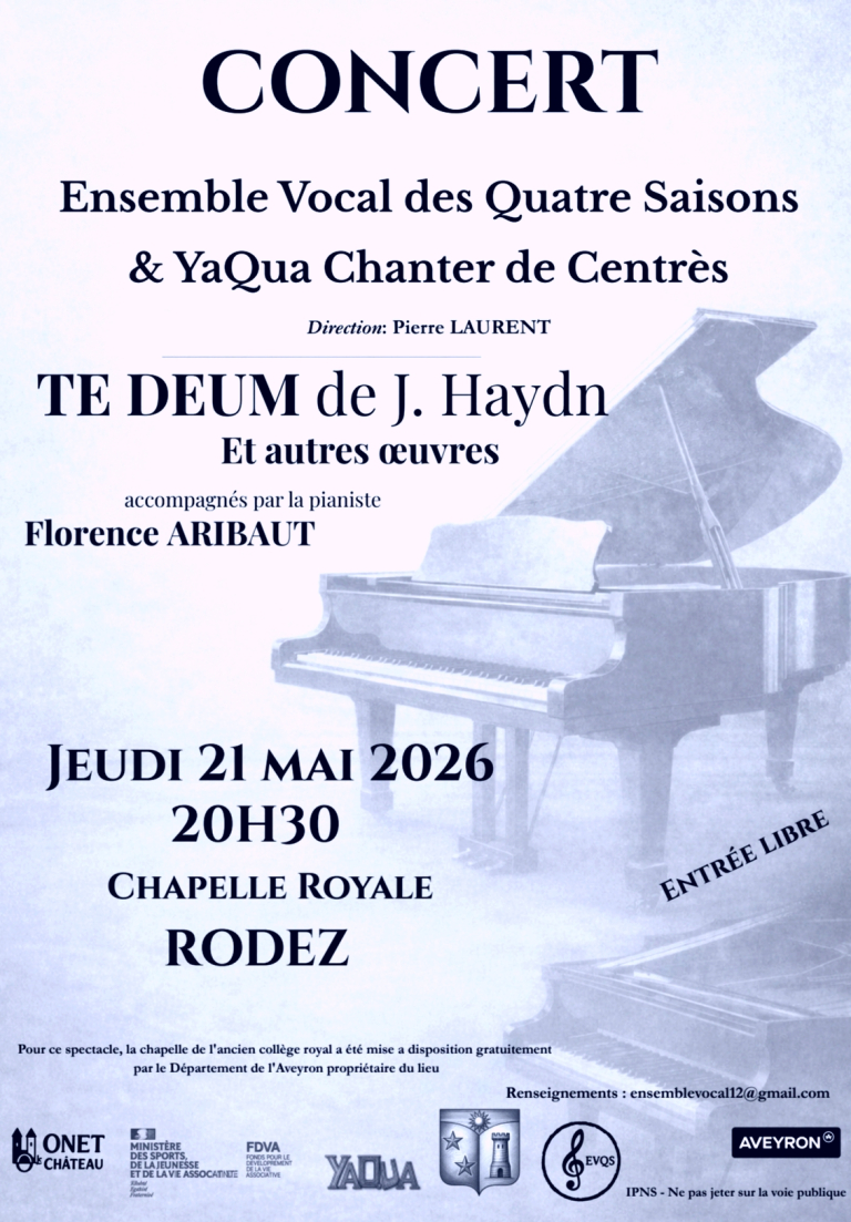 CONCERT LE 21 MAI A LA CHAPELLE ROYALE DE RODEZ AVEC YAQUA CHANTER ET L’EVQS