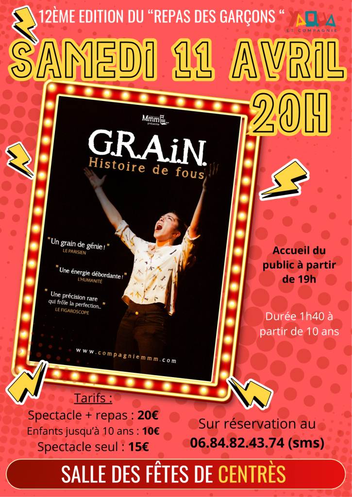 Le tarif est fixé à 20€ pour la formule spectacle et repas (réduit à 10€ pour les enfants jusqu’à 10 ans). Le spectacle seul est lui proposé à 15 €.